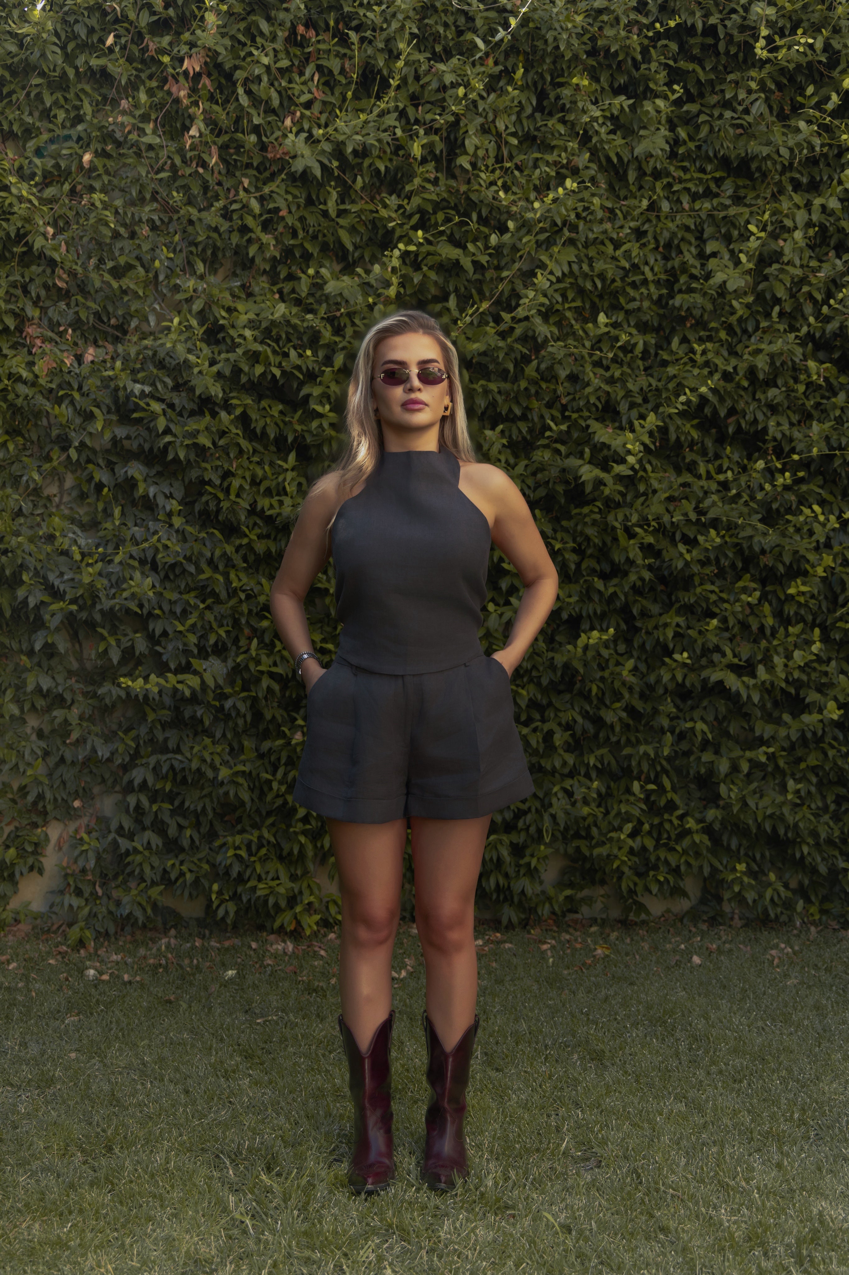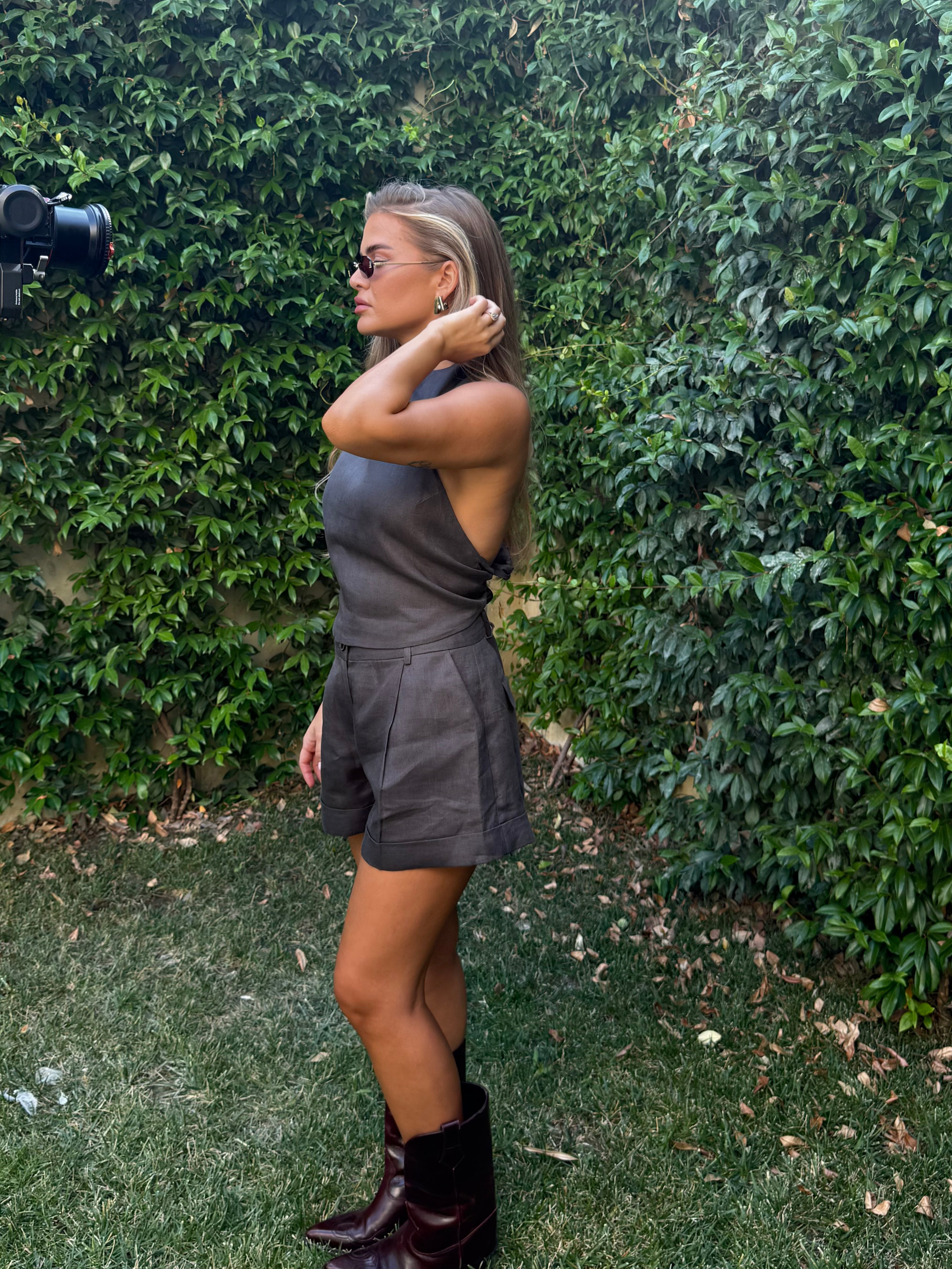 A whisper of ease in dark grey linen.