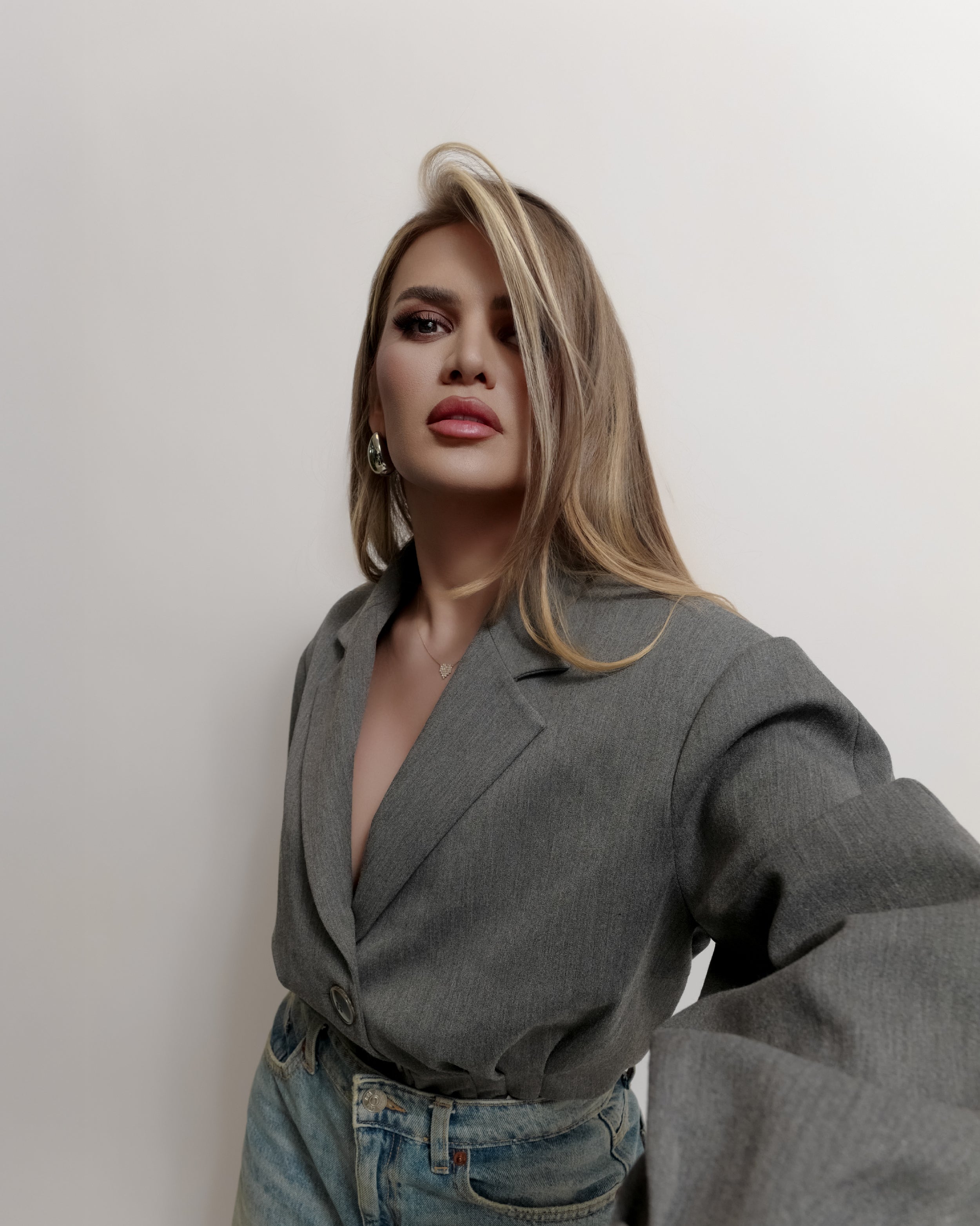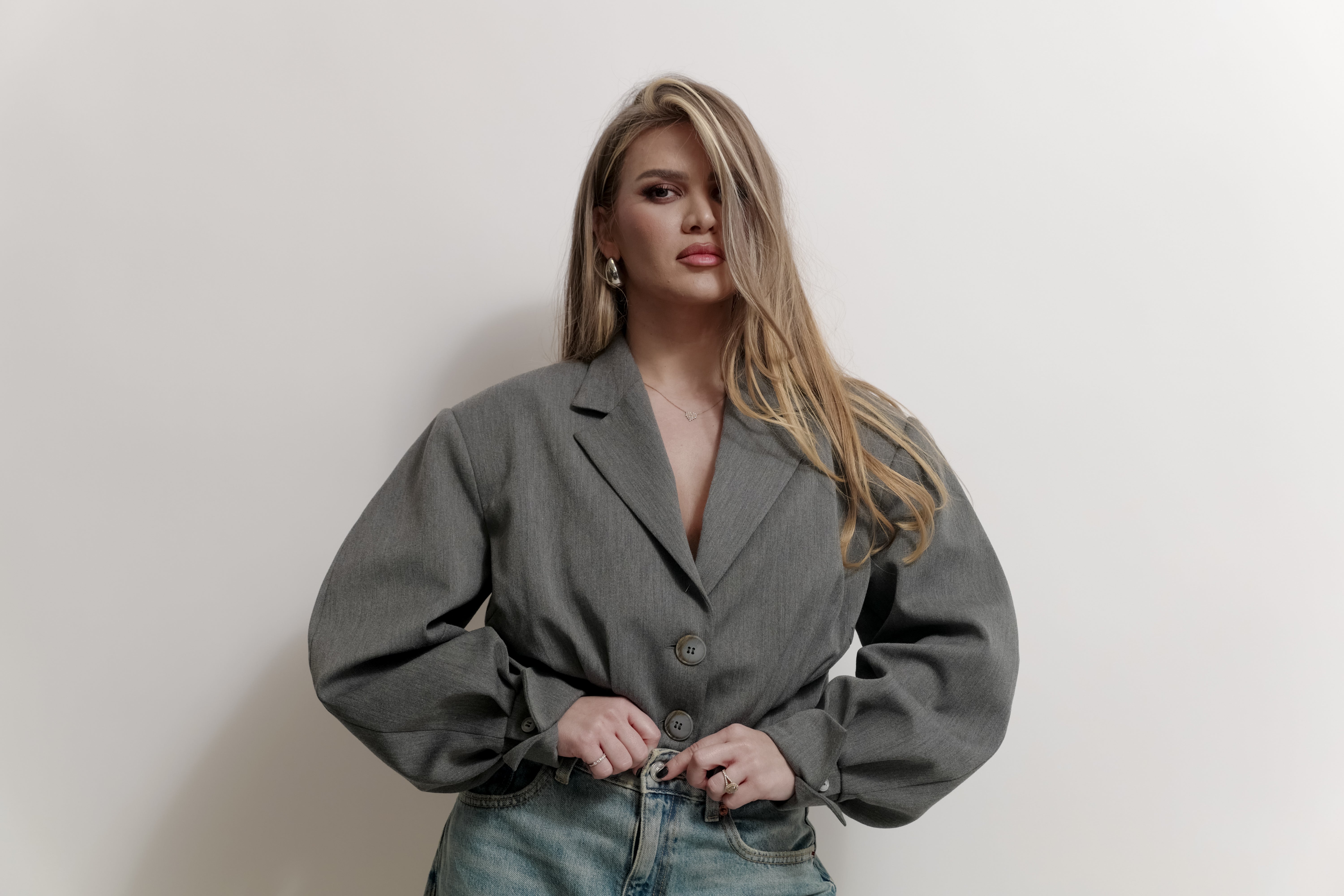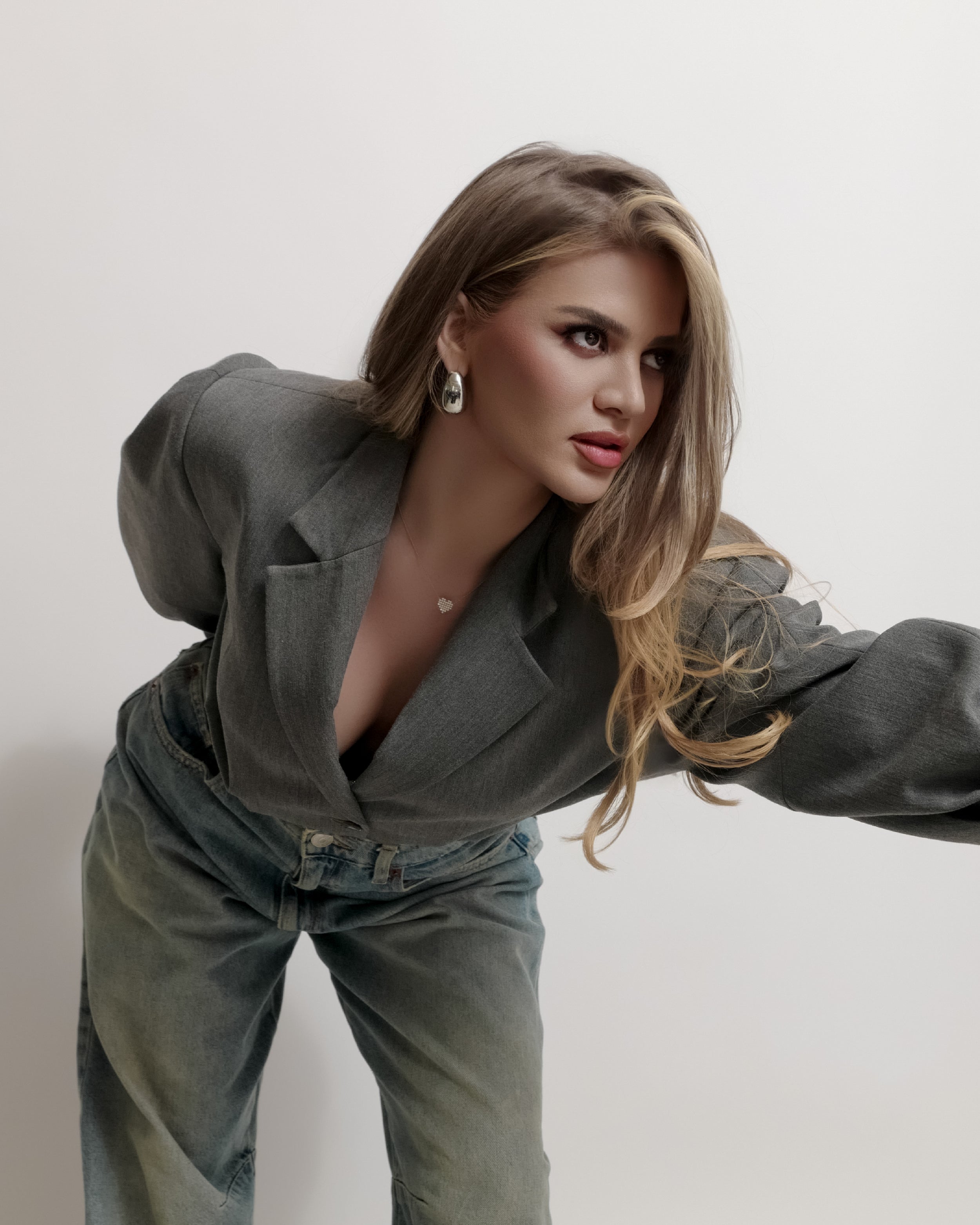 A contemporary blazer featuring structured shoulders paired with an integrated bodysuit for a sleek, cohesive look. Crafted from a premium blend of viscose and cotton, this stylish combo brings sophistication and comfort together effortlessly.