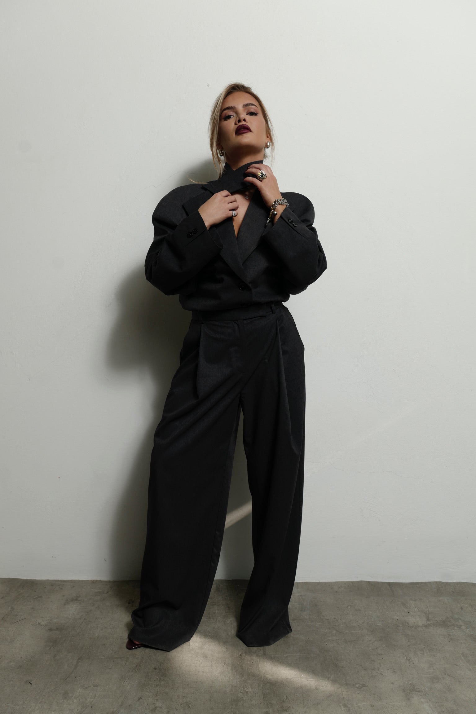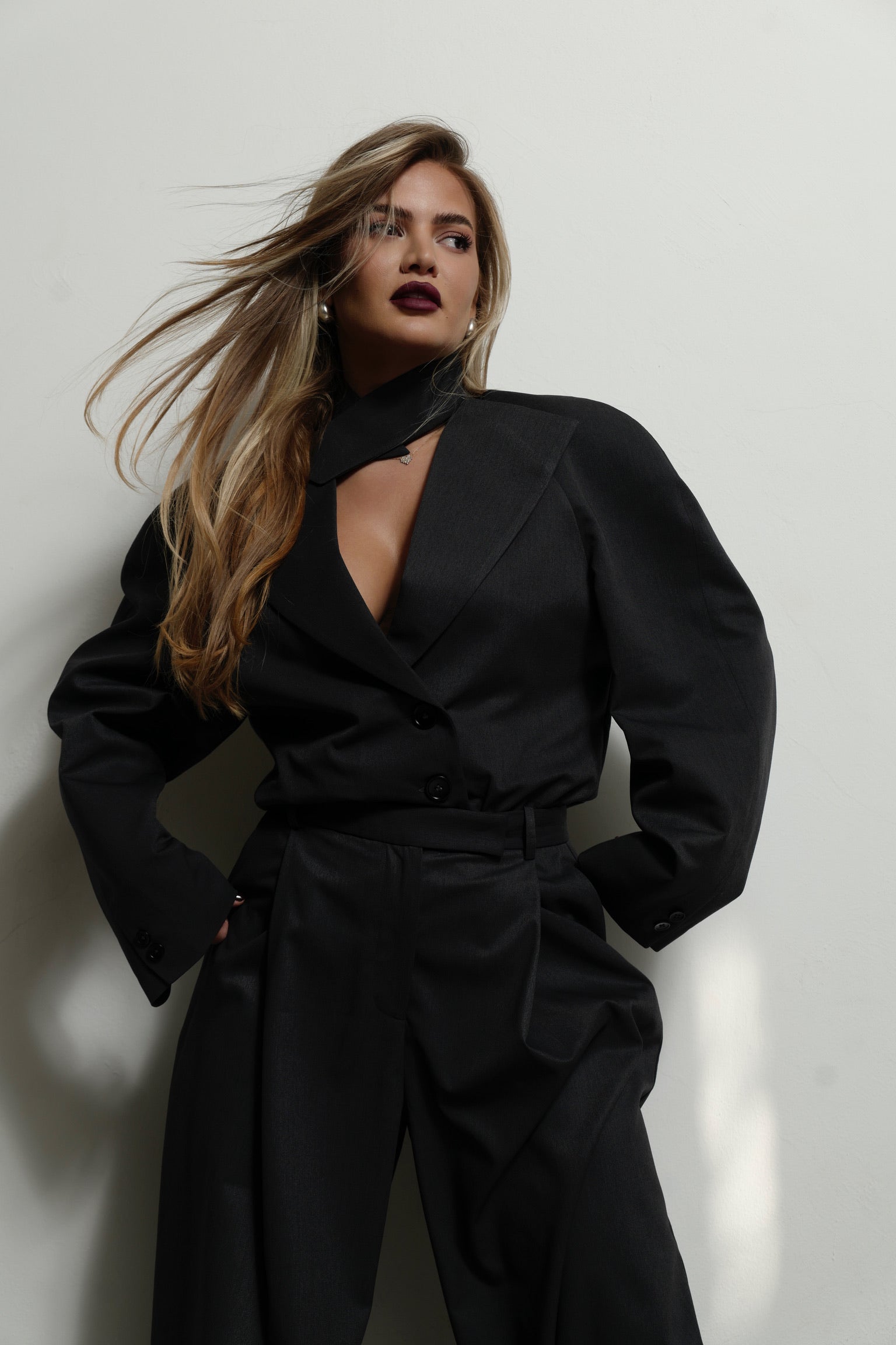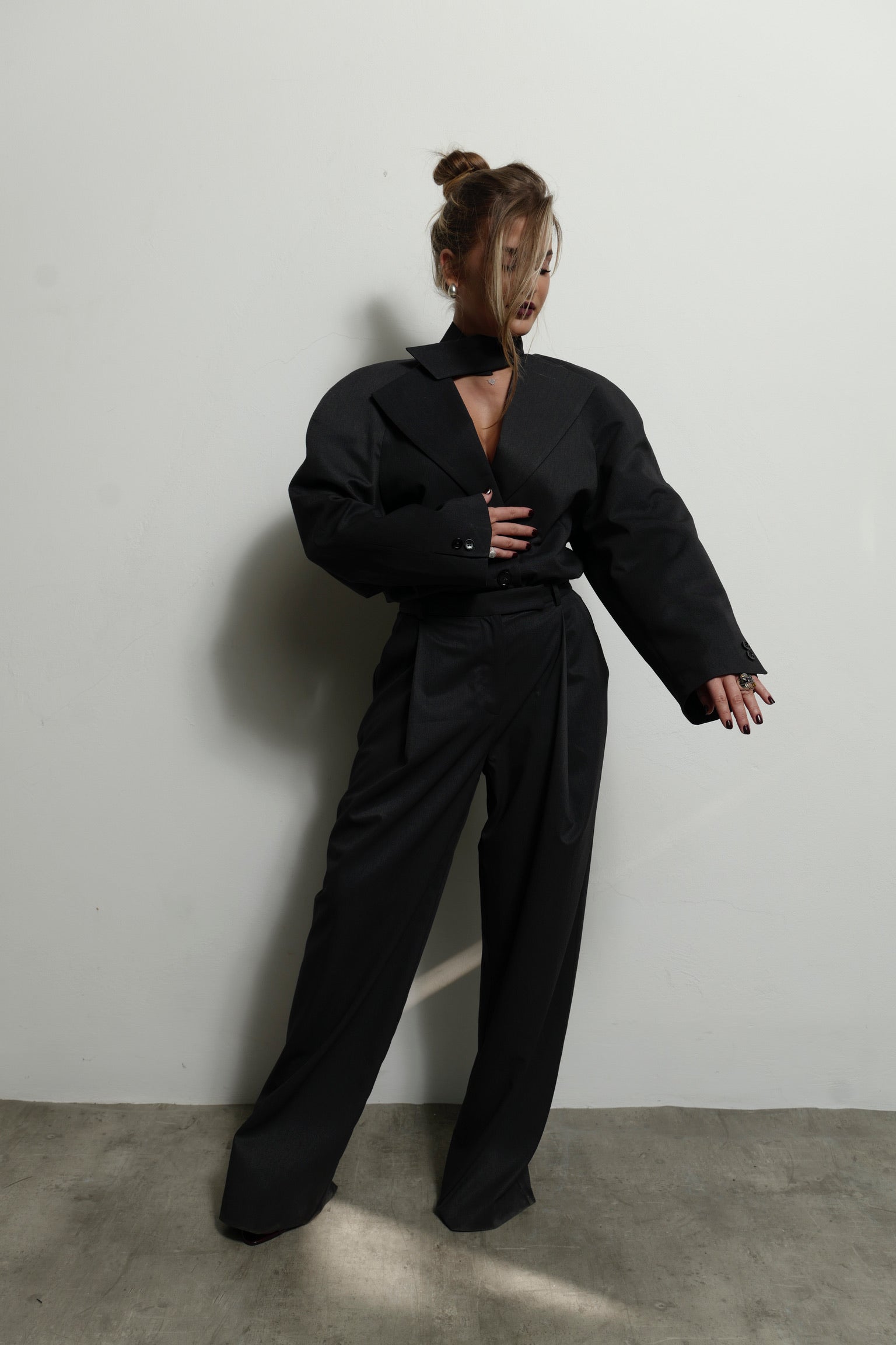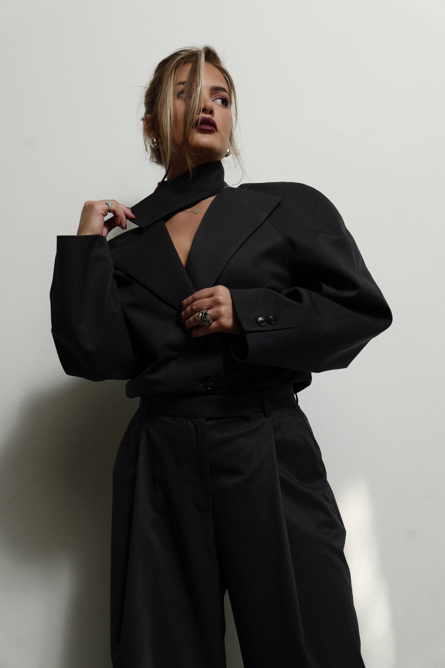 A blazer, reimagined. Sleek bodysuit fit with a detachable collar for endless looks.